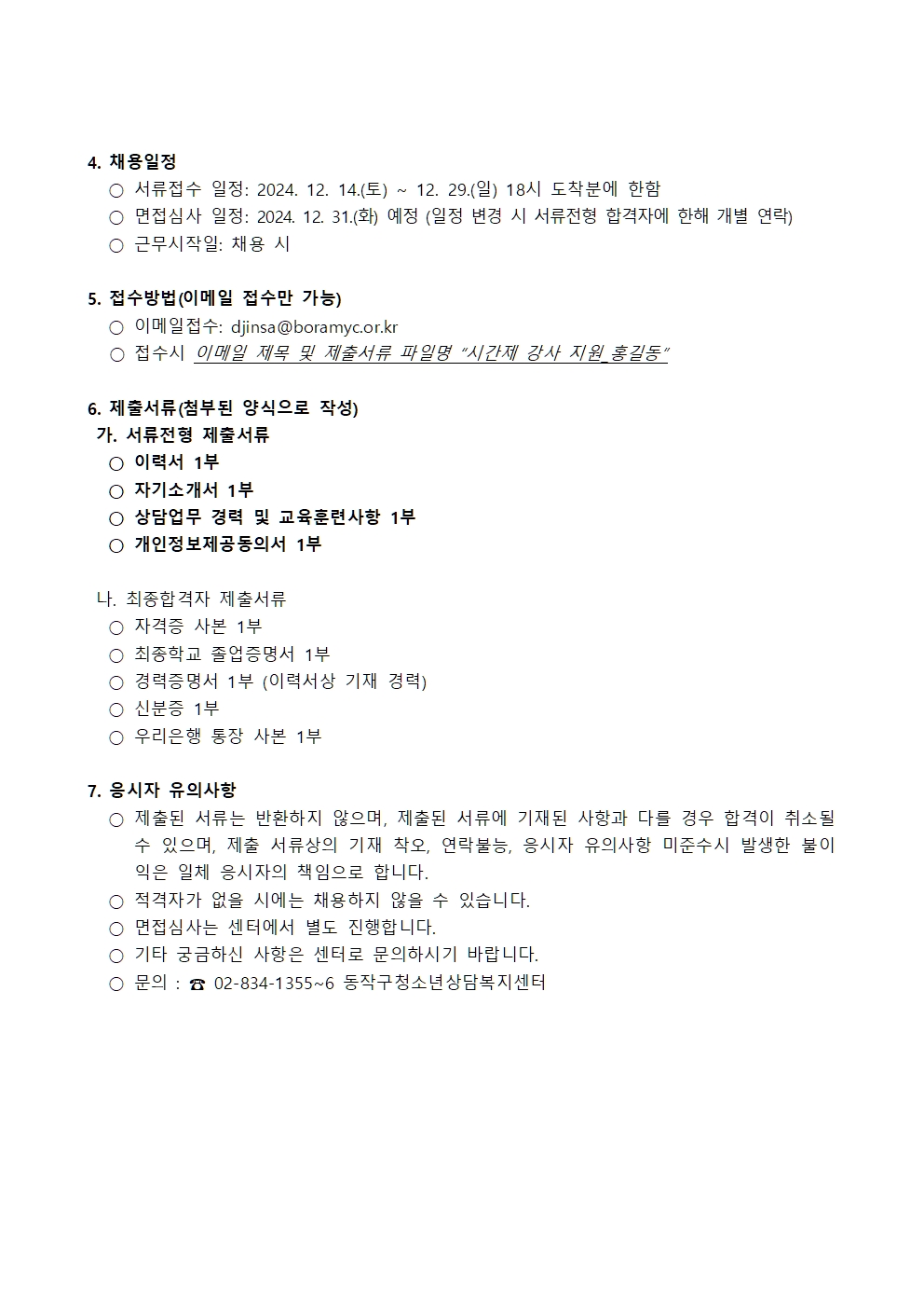 2025년 시간제 강사(주말_개인상담) 모집 공고문 > 채용공고